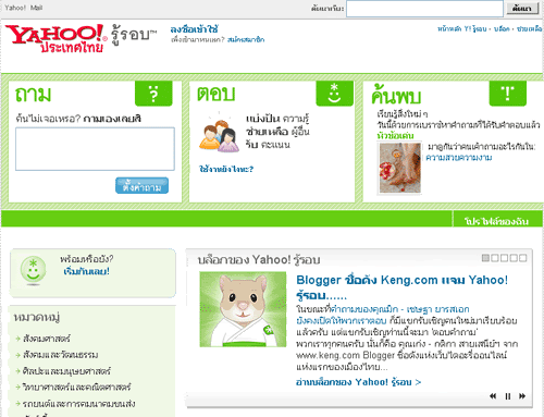 เพื่อน ๆ อาจใช้ Yahoo! รู้รอบเพื่อขอความช่วยเหลือเกี่ยวกับโครงงานวิจัยที่โรงเรียน เช่น การค้นหาข้อมูลทางวิทยาศาสตร์ หรือพวกเขาอาจตั้งคำถามและตอบในเรื่องที่เป็นความสนใจส่วนตัวของพวกเขา เช่น เคล็ดลับการเล่นเกม PlayStation เรื่องเกี่ยวกับฟุตบอลพรีเมียร์ลีก หรือแม้กระทั่งข่าวซุบซิบของดารานักร้องไทยที่เราสนใจ อืม! น่าสนนะ ...