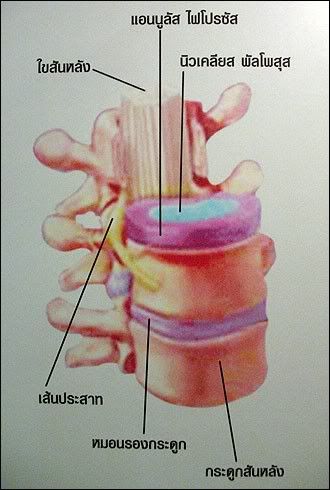 วันนี้จึงขอเริ่มจากการแนะนำให้คุณผู้อ่านรู้จัก หมอนรองกระดูก อวัยวะรูปร่างคล้ายหมอนหนุนศีรษะ ขนาดเส้นผ่าศูนย์กลางเพียง 1 นิ้วเศษๆ และหนาราว 1 เซนติเมตร เชื่อมต่อระหว่างกระดูกสันหลังแต่ละข้อ ตั้งแต่คอไปจนถึงก้นกบ ทำหน้าที่รองรับแรงกดจากกระดูกสันหลังทั้งหมด